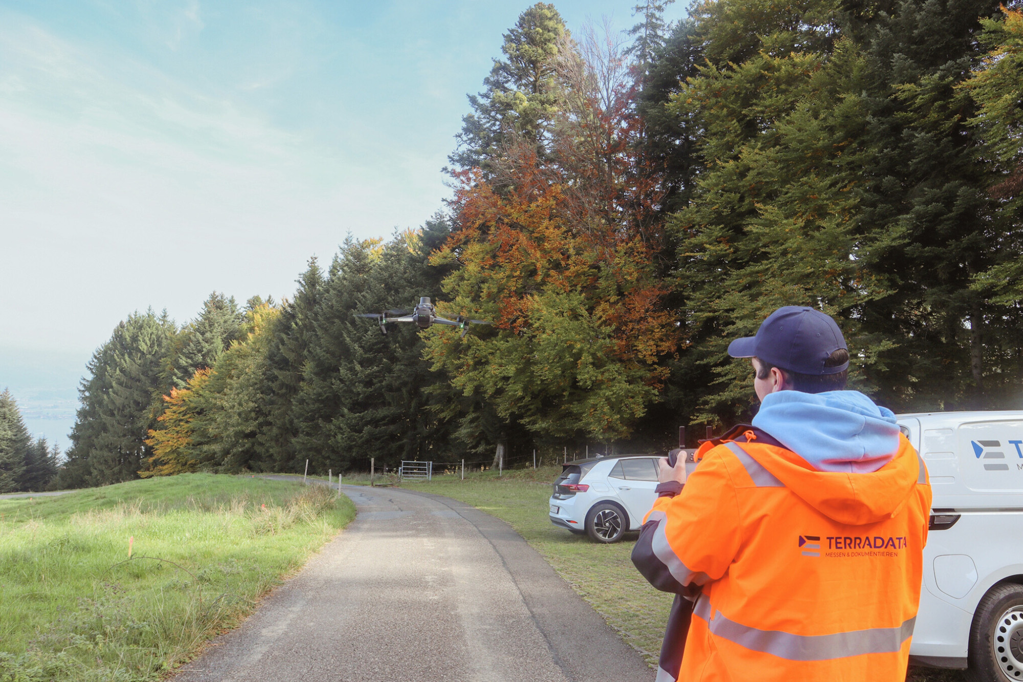 Im Rahmen der Beweissicherung wurden betroffene Zufahrtsstrassen und angrenzende Gebäude dokumentiert. Die Aufnahmen erfolgten je nach Gelände klassisch vom Boden aus sowie ergänzend mittels Drohnenbefliegungen, um auch schwer zugängliche Abschnitte entlang der rund fünf Kilometer langen Zufahrtsstrassen effizient zu erfassen.