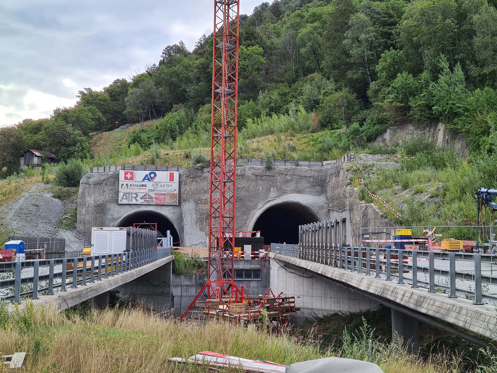 Der Riedbergtunnel mit zwei rund 500 m langen Röhren liegt im Walliser Rhonetal bei Gampel und ist Bestandteil der noch fehlenden Autobahnverbindung im Oberwallis zwischen Sierre und Visp.