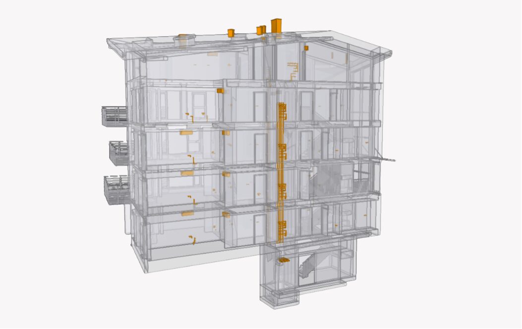 Terradata begleitet das Projekt im Bereich Architekturvermessung mit der fortlaufenden Erfassung des Bauzwischenstandes und der modellbasierten Aufbereitung der Gebäudestrukturen. Die erstellten Modelle dienen als präzise Grundlage für die Weiterplanung und ermöglichen eine koordinierte Ausführung. Ein besonderer Fokus liegt auf der Qualitätssicherung mittels Punktwolkenabgleich sowie der modellbasierten Kommunikation über BCF.
