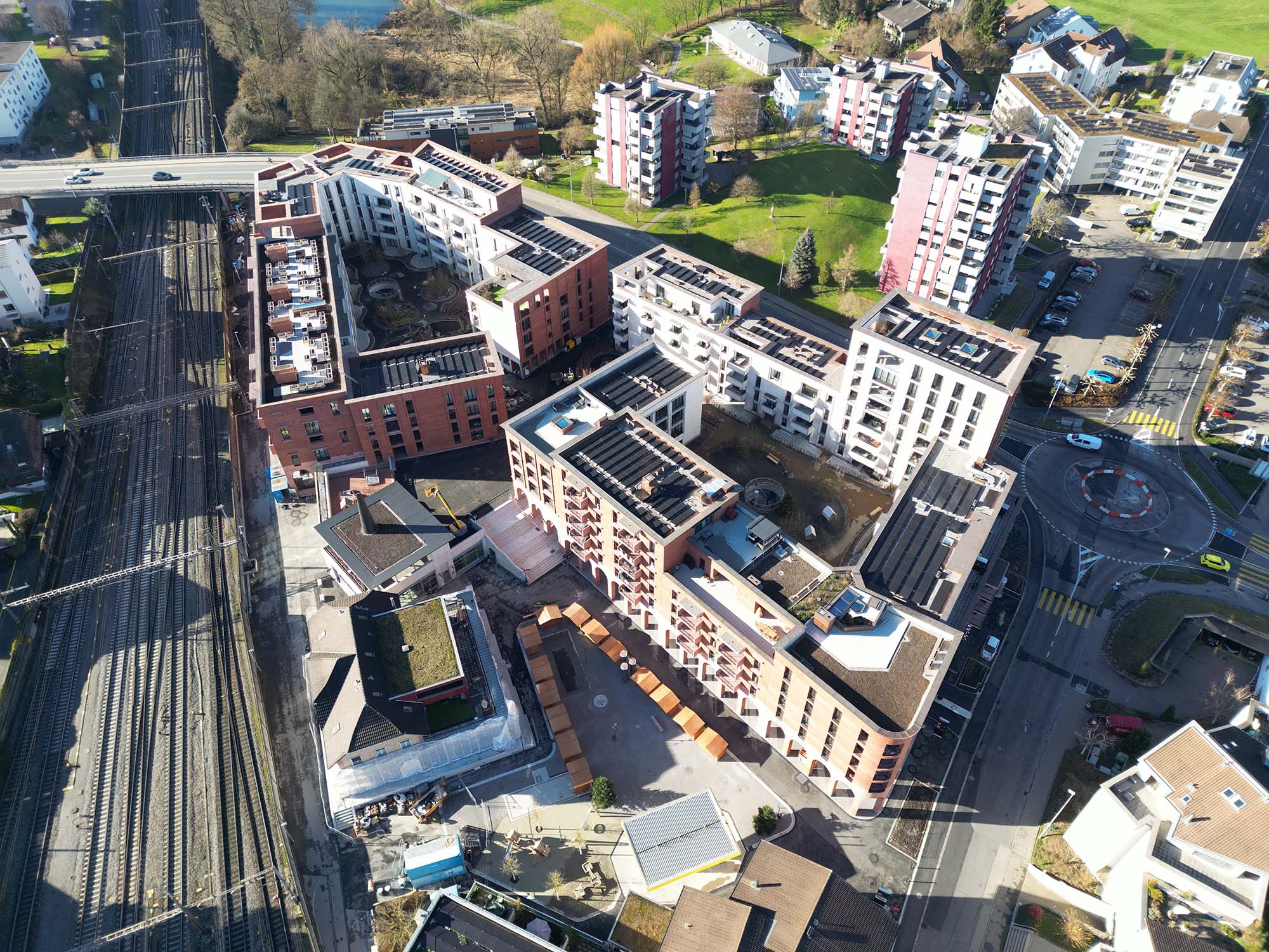 Im Rotkreuzer Zentrum entstand eine Überbauung mit dem verkehrsfreien Chäsiplatz, insgesamt 124 modernen Mietwohnungen und einem vielfältigem Angebot an kleinen Gewerbeflächen.