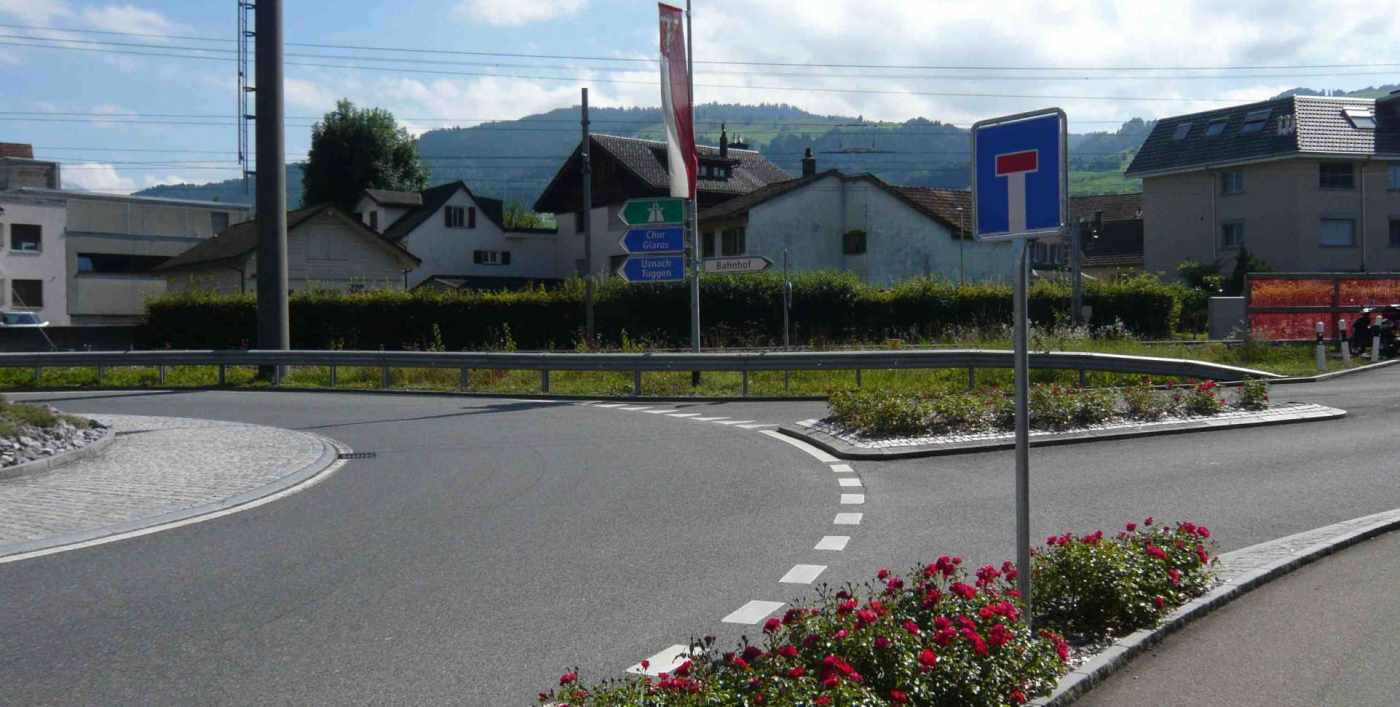 Mit dem Grossprojekt soll der geschützte Ortskern von Lachen vom Durchgangsverkehr befreit werden. Das Projekt umfasst den Neubau von ca. 1 km Kantonsstrasse entlang des SBB-Trassees, zwei Kreisel, eine Personenunterführung beim Bahnhof, eine P+R-Anlage, die Neugestaltung des Bahnhofplatzes, diverse Kunstbauten sowie mehrere Anschlüsse an das Gemeindestrassennetz.