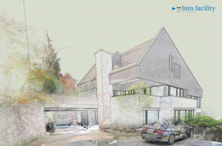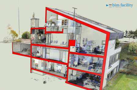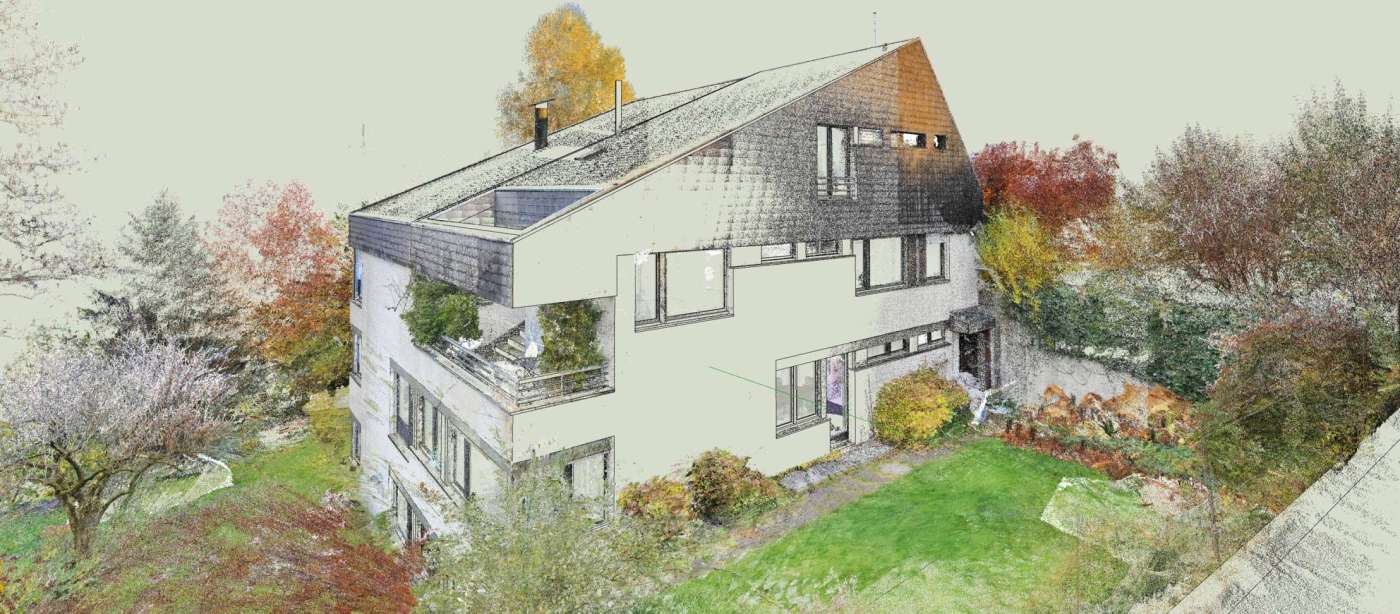Die Fröhlich Architekten AG benötigte von diesem Objekt in Richterswil für die Planung eines Umbaus ein BIM-Modell. Zuerst wurde das gesamte Gebäude mit Laserscanning erfasst um aus der resultierenden Punktwolke das Revit-Modell zu erstellen. Darauf wurde das IFC Format exportiert, in Allplan importiert um das Allplanmodell abzugeben.