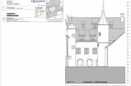Da keine verlässlichen Plangrundlagen des Gebäudes vorhanden waren, wurde dieses mittels 3D-Laserscanner und Tachymeter neu vermessen und die gewünschten 2D-Pläne wurden erstellt.