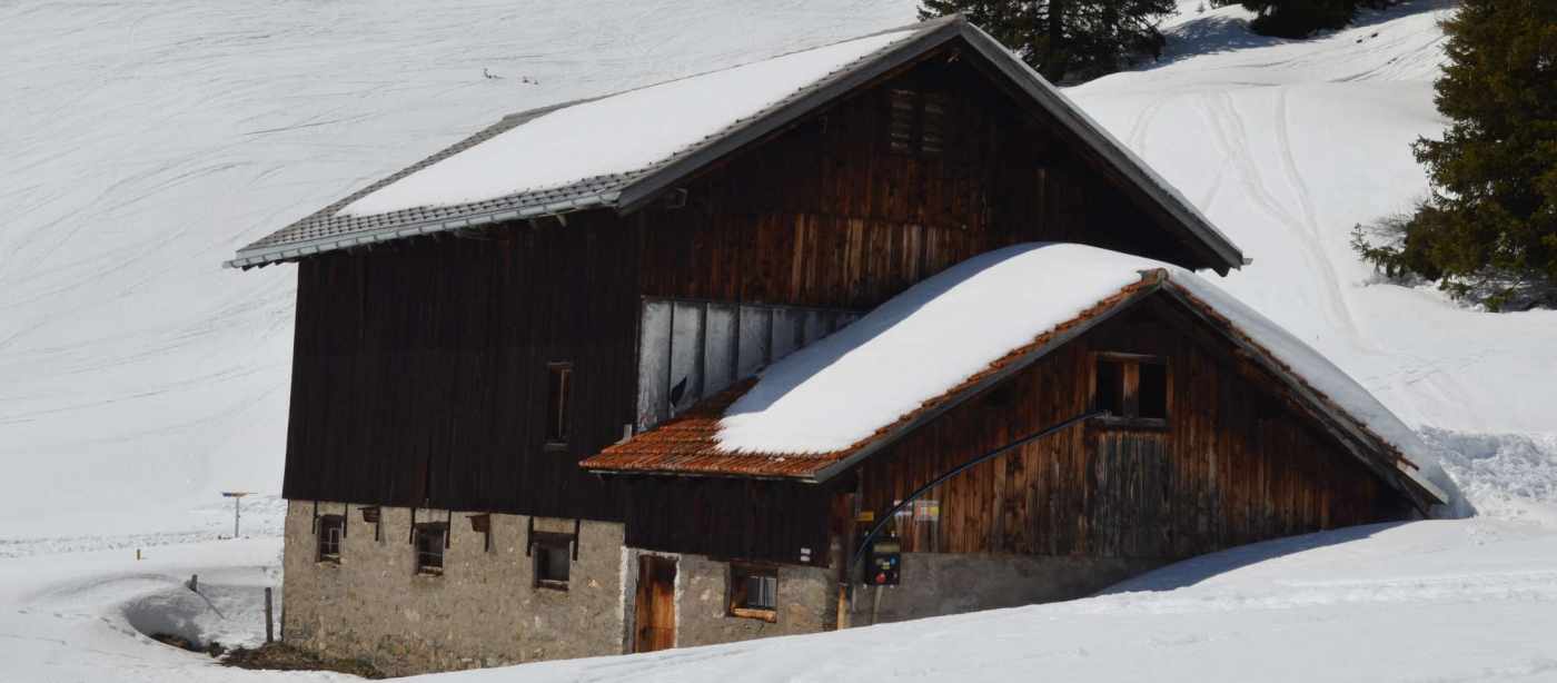 Die Gebäudeaufnahmen dienen als Projektierungsgrundlagen für die Umnutzung des Viehstalles. Nicht alltäglich war die Anfahrt. Da das Objekt abseits liegt und im Winter nur über die Skipisten zugänglich ist, wurden die Mitarbeiter inkl. ihrer Ausrüstung mit dem Schneemobil zum Objekt gefahren.