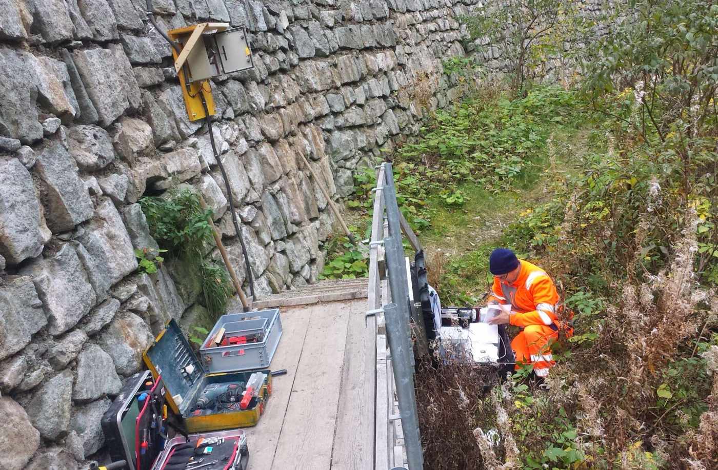 Zur Sicherstellung der Verkehrsachse Nord-Süd über den San Bernadino wird ein Felssturz oberhalb der Kantonsstrasse (italienische Strasse) zwischen Rofla und Sufers überwacht. Zur Abkärung der Felsverschiebung entlang von offenen Klüften und Spalten wurden neun Telejointmeter in einer 150m hohen, vertikalen Granitwand montiert. Die Installation der Messgeräte im sehr schwer zugänglichen Gelände wurde in Zusammenarbeit mit Bergführern ausgeführt. Funksender schicken stündlich die Sensordaten zu einem Datenlogger an einem gut zugänglichen Ort bei der Kantonsstrasse.